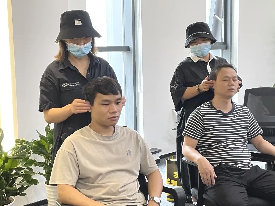 李東飛老師在檢測中發(fā)現(xiàn),不少年輕員工存在睡眠障礙問題。他表示,耳穴貼壓對于改善睡眠障礙,提高睡眠質(zhì)量效果非常顯著。另外,由于伏案工作、長時(shí)間低頭看手機(jī)等原因,肩頸酸痛也是本次檢測中發(fā)現(xiàn)的最常見的問題之一。對此,李東飛老師建議大家不要長時(shí)間低頭,要切實(shí)提高我保健的意識。