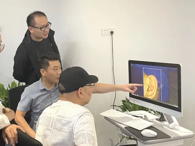 不同于常規(guī)的體檢,中醫(yī)耳穴診療只需要一支耳穴檢測筆、一臺電腦就可以操作了。耳穴檢測操作師李東飛老師在員工手腕部貼上導(dǎo)聯(lián)電極,并通過對兩只耳朵的耳像采集,同時(shí)輸入相應(yīng)參數(shù),即可在電腦上生成該員工的“耳穴檢測報(bào)告”。耳穴檢測完成后,診療師再根據(jù)耳穴檢測報(bào)告,實(shí)施“耳穴貼壓治療”方案。耳穴貼壓前,員工們先享受了一輪耳廓按摩服務(wù)。你可別小瞧這按摩,除了能帶來舒適的按摩體驗(yàn)感,其最大目的是調(diào)動耳廓的氣血,讓貼壓效果更好。