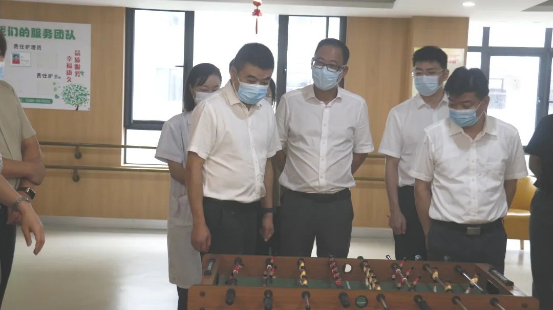 9月2日,舟山市普陀區(qū)委書記孫志龍一行蒞臨康久集團(tuán)旗下普陀天頤老人之家調(diào)研,舟山市普陀區(qū)民政局局長(zhǎng)丁勇等相關(guān)人員陪同調(diào)研?稻眉瘓F(tuán)副總裁、普陀天頤老人之家院長(zhǎng)馮偉琴為調(diào)研組一行介紹普陀天頤的運(yùn)營情況。